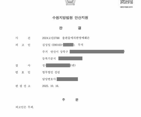 김성일 목사, 출판물 명예훼손 혐의서 전면 무죄 판결